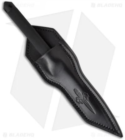 The A.D.O. (Alpha Detachment Operative) from Microtech. The ADO is hand-crafted from a solid billet of 154CM steel. The single-edged spear point blade is a hollow ground with plain edges, hand ground by Tony Marfione. This knife follows the design of Chris Reeve fixed blades with a hollow handle, accessed by unscrewing the glass breaker tip. This A.D.O. has knurled grip and comes with a custom leather sheath with embossed Marfione Dagger Logo. Dagger logo and 07/2011 date.