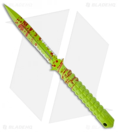 This Zombie Tech edition ADO features a green coated double-edge dagger blade (serrated) and handle with random blood red spatter.