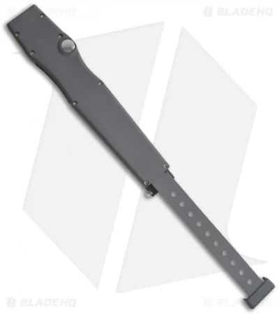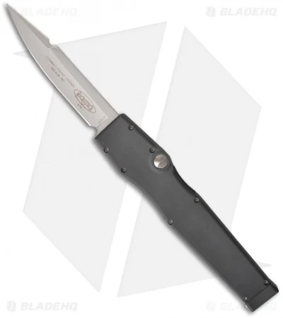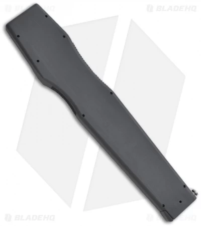 The CFO features a bead blast finished ATS-34 stainless steel blade with a partially sharpened upper grind. The blade on this single action out-the-front automatic knife fires with a push of the front mounted firing button and is released by pushing the button, followed by a pull of the charging handle at the base. The aluminum handle features grip inserts at the grooves. This vintage Microtech is rare and collectible; a great addition to any collection and a must have for the ultimate Microtech collection.