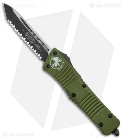 Microtech’s largest double-action OTF knife is named after the Troodon dinosaur. The Combat Troodon is the really large version of the popular Troodon. Despite the size the handle feels slim and comfortable. The single edged tanto style blade is both attractive and functional and the action is Microtech excellent.