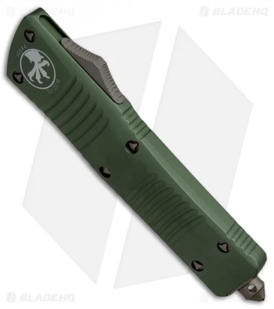 Microtech’s largest OTF production knife is named after the Troodon dinosaur. The Combat Troodon is the larger version of the popular Troodon. Despite the size, the handle feels slim and comfortable. The action is excellent.