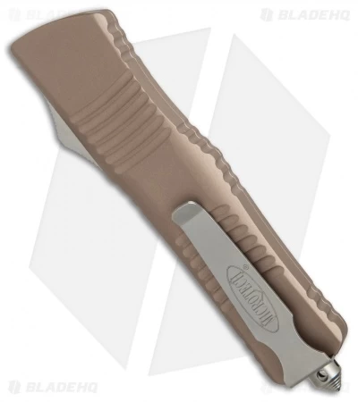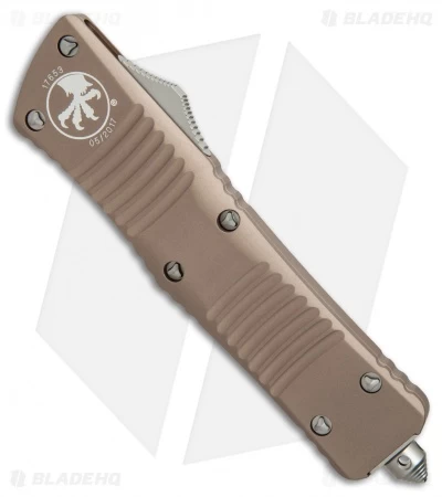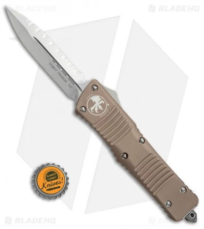 Microtech’s largest OTF production knife is named after the Troodon dinosaur. The Combat Troodon is the really large version of the popular Troodon. Despite the size, the handle feels slim and comfortable. The double-edged dagger style blade is both attractive and functional and the action is Microtech excellent.