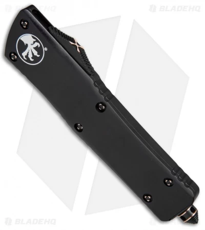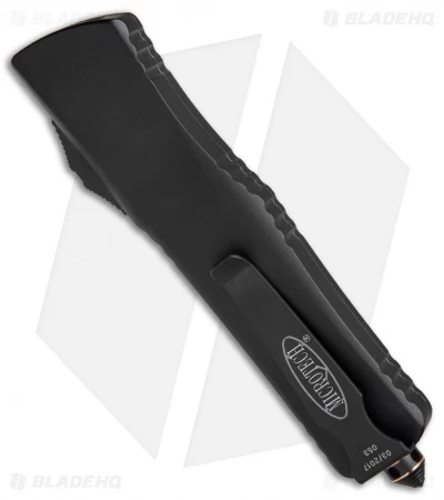 Microtech’s largest OTF production knife is named after the Troodon dinosaur. The Combat Troodon is the really large version of the popular Troodon. Despite the size, the handle feels slim and comfortable. The double-edged dagger style blade is both attractive and functional and the action is Microtech excellent.