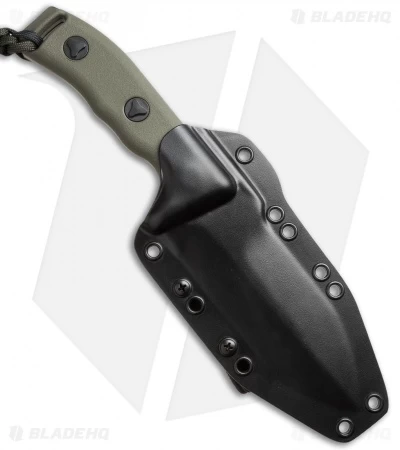 The Microtech Crosshair knife is tried and true; this knife will hold up to the most adverse conditions. The blade is full tang, green finished and double edged. Both edges are partially serrated. The handle has composite scales and a braided lanyard with a stainless steel “knocker” bead. Includes a heavy duty black molded sheath.