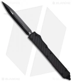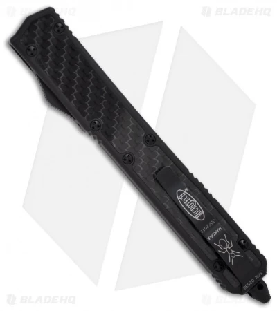 The Microtech Makora II knife fires in and out automatically via the sliding firing button the the knife’s right side. The double edge blade is black DLC coated Elmax steel with plain cutting edges. This Makora II has a black anodized T-6 aluminum handle with carbon fiber inserts front and back. The hardware, pocket clip, glass breaker and firing button are all tactical black finished. The action on this run feels exceptional and we think the Makora series represents the Microtech line well. The screws on these are custom and cannot be opened with either torx or standard Tri-wing wrench sets. You must use the tool sold HERE.