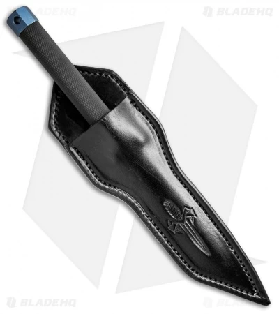 This Marfione Custom A.D.O. (Alpha Detachment Operative) features a hollow ground tanto blade with a black DLC coating and an Apocalyptic finish. The ADO has a Chris Reeve style hollow handle made from a solid billet of 154-CM stainless steel. It can be accessed by unscrewing the glass breaker tip which is made from blue anodized titanium. The A.D.O. includes a custom black leather sheath with the Marfione Dagger logo.
