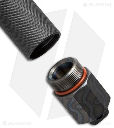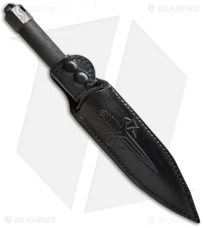 This Custom Large A.D.O. (Alpha Detachment Operative) from Microtech is hand-crafted from a solid billet of CPM-3V steel. The larger knife gives this beautiful design a more substantial platform and awe-inspiring presence. This model has a hand ground dagger blade made by Anthony Marfione. The knife has a black DLC coating and a Dagger logo on front with the model, maker initials, blade steel, and date on back. This fixed blade follows the design of Chris Reeve fixed blades with a hollow handle, accessed by unscrewing the titanium end cap. This A.D.O. has a knurled grip and comes with a custom leather sheath with embossed Marfione Dagger Logo.
