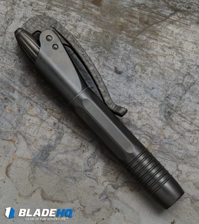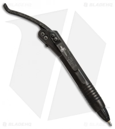 The Siphon is a unique folding or lever-action pen and a stylish writing instrument from the mind of Microtech. The pocket clip unfolds and the pen tip is revealed. This Marfione custom model features a 6AL4V titanium handle with a black DLC coating and a lightning strike carbon fiber lever. Includes a black fisher space pen cartridge (replaceable).