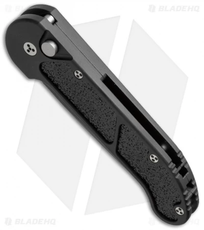 This Microtech Mini UMS automatic features a black anodized T-6 aluminum handle with traction inserts. It has black finished blade made from 154-CM steel with a partially serrated edge. The Mini UMS is a smaller version of the popular Microtech UMS (Uniformed Military Services) knife. An essential item for any Microtech collection!