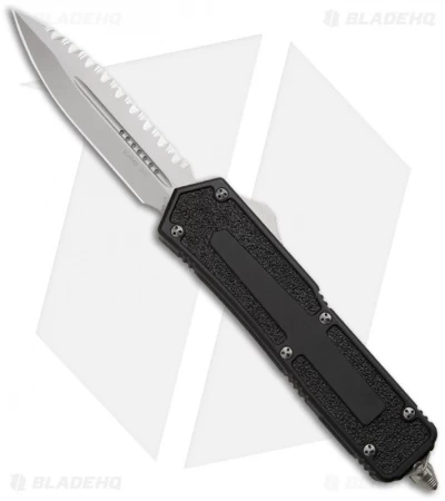 This Scarab has an S35VN stainless steel double-edged dagger blade with plain/fully serrated edges and a bead blast finish. The black anodized T6 aluminum handle has grip inserts on front and back. The hardware, pocket clip and glass breaker are bead blast finished. Model information and Microtech/Scarab logos are on the pocket clip.