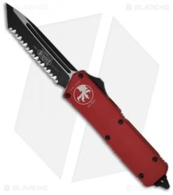 The Microtech Scarab is perhaps the mother of all out-the-front automatic knives. The Scarab is double action meaning it fires both out and in via the slide button located on the right side of the knife. Action, lock-up and quality are all top-notch Microtech.