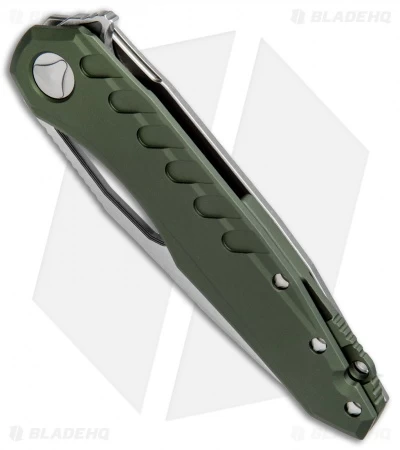 This Microtech Sigil features an OD green finished handle with an OD green plate on back. The blade has a stonewashed finish and a plain edge.