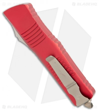 This Combat Troodon automatic knife features a stunning Hellhound tanto blade with a bronze finish. It has a red anodized 6061-T6 aluminum handle with matching bronze hardware.