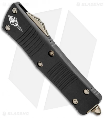 This Troodon automatic knife features a bronzed Hellhound Tanto blade and a black anodized 6061-T6 aluminum handle with bronzed hardware.