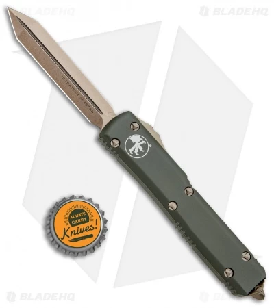 This Ultratech features a bronze stonewashed finished Spartan style blade with plain cutting edges. It has a contoured, OD green anodized 6061-T6 aluminum handle with a bronze stonewash finished pocket clip, glass breaker, and stainless steel hardware.