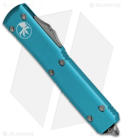 This Ultratech features a double-edged dagger blade with a satin finish and plain edges. It has a contoured, turquoise anodized 6061-T6 aluminum handle with a bead blast finished pocket clip, glass breaker, and stainless steel hardware.