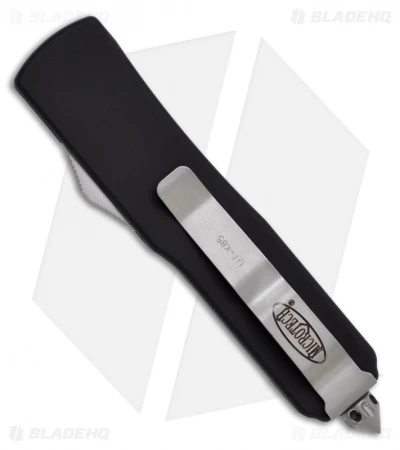 Microtech’s UTX-85 out-the-front knife series is compact, functional, affordable and makes a great all around user or collectible. This UTX-85 blade is bead blast finished and is made from premium stainless steel with a plain edge. This model features a black anodized handle. The pocket clip and hardware are bead blast finished. The clip is reversible or removable. The screws on this model require the Domed Tri-Wrench bit click (HERE) to remove or adjust.