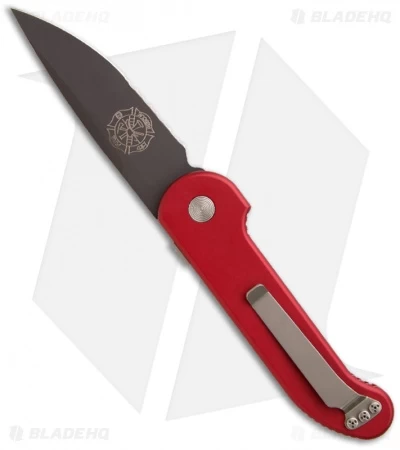 This UMS Firefighter Edition automatic knife came from a collection. It is in excellent condition and includes nylon sheath, box and papers. The blade’s front face is the rare misspelled “UMS, FIREFITHER 05/2003” around the Microtech logo and the back side has the fire-rescue logo. The pictures above are of the actual knife for sale.